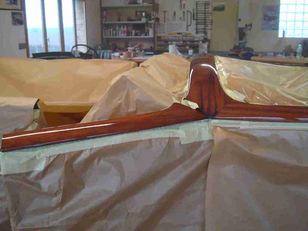 Ebénisteries poncées, vernis et remises en place sur la voiture